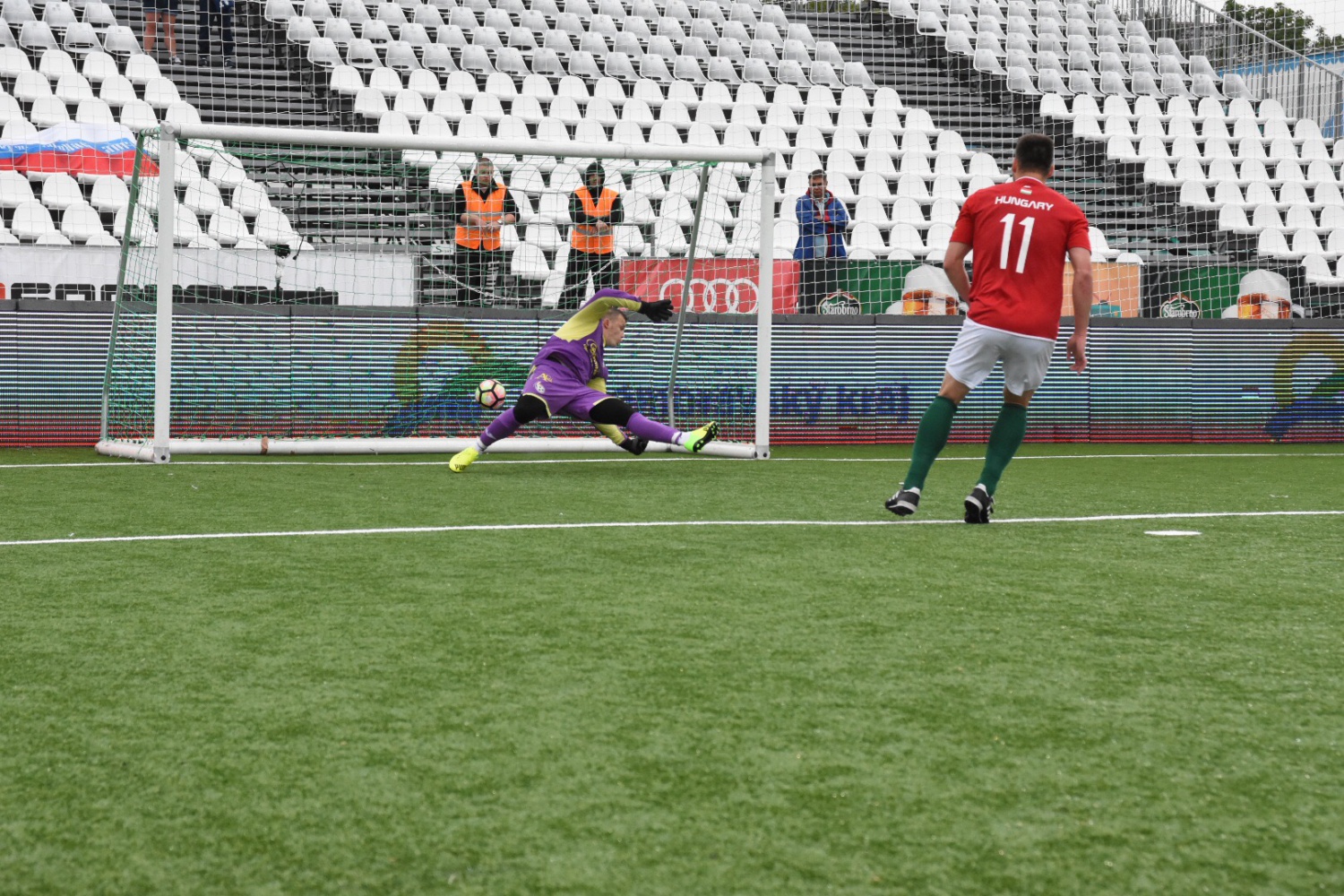 Béres lövéséhez csak hozzáérni tud a kapus. 1–1