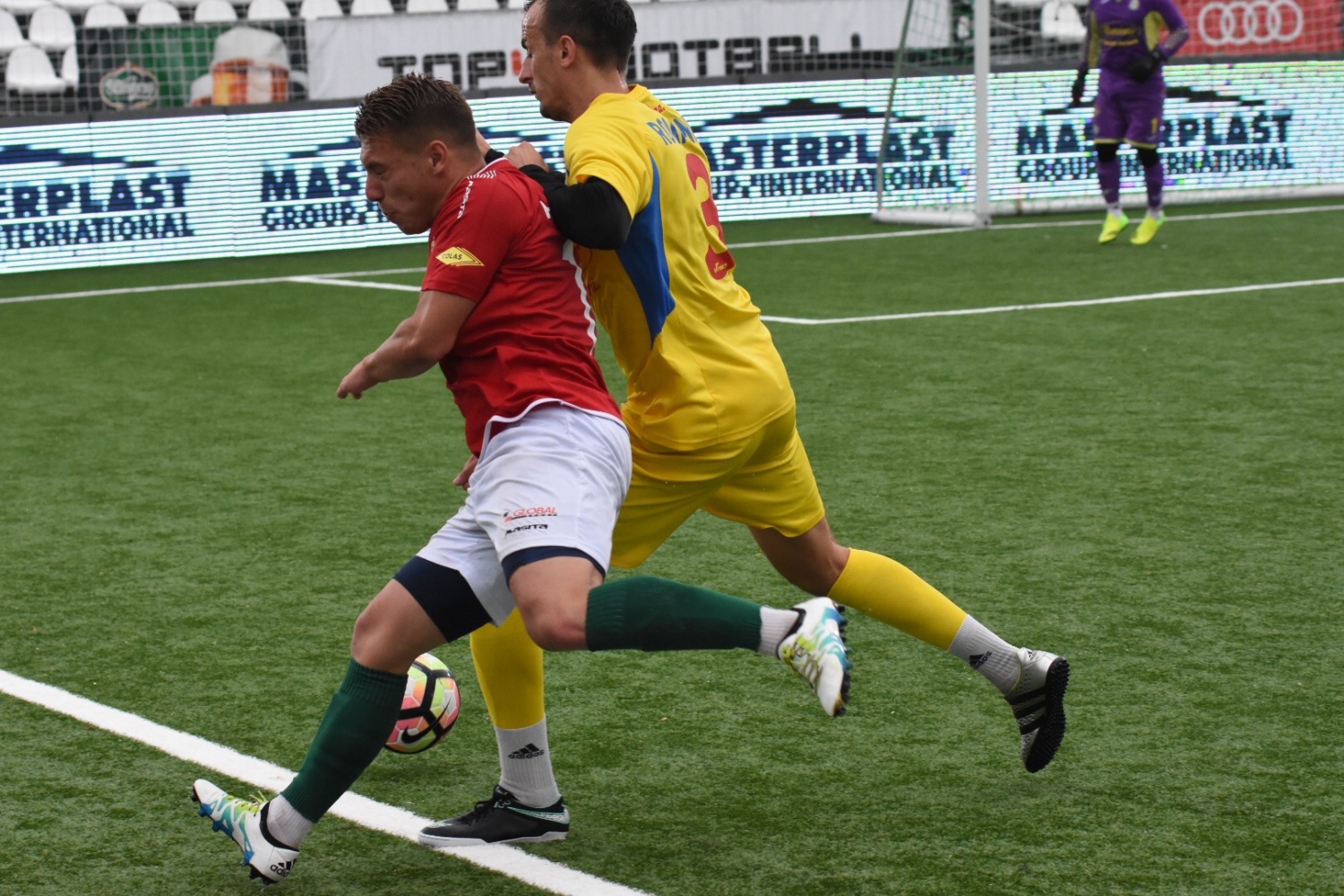 9. Marian szabadrúgásába Claudiu tette bele a fejét, de a bal felsőt nem tudta már eltalálni.
