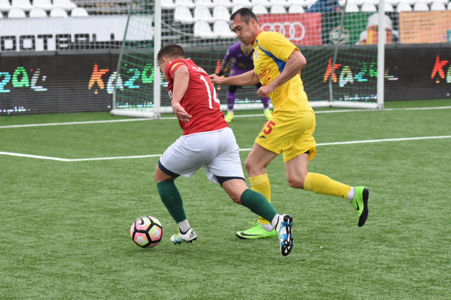 17. A román kapus a felezőig kimerészkedik, de nincs belőle veszély.
