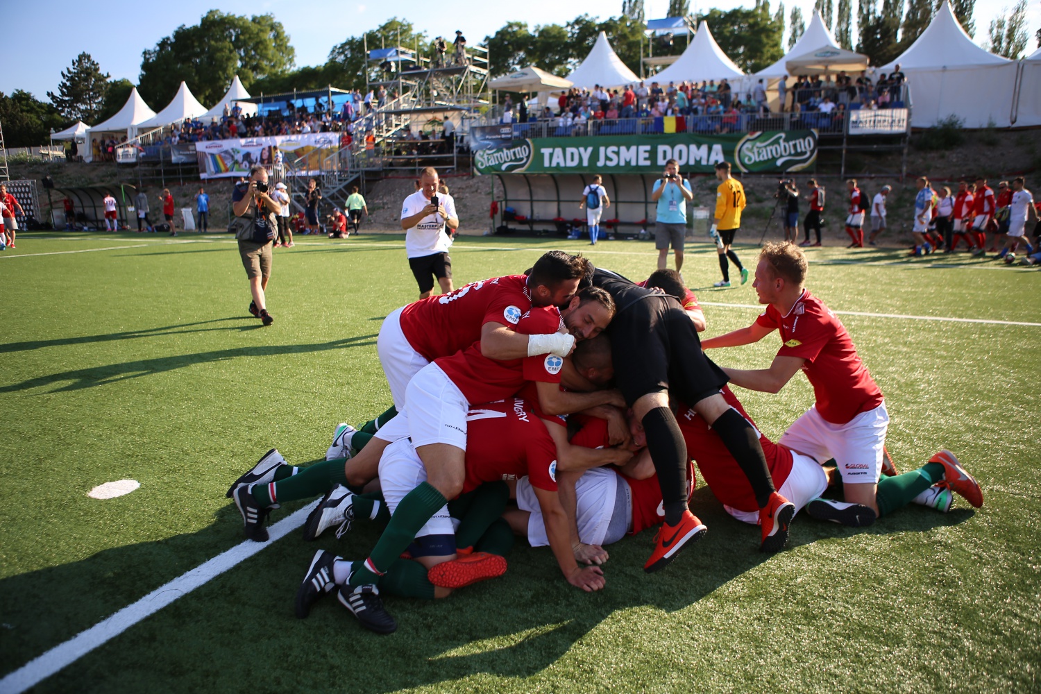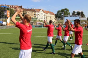 A félidőben valamelyest rendezte a sorokat Nagy Lajos és mondhatni még egy fokozattal feljebb kapcsoltak a fiaink, de az a várva várt gól, az egyenlítő találat csak nem akart jönni. Arról, hogy ne maradjon 0-1 az eredményjelzőn a csapat ügyeletes mókamestere Béres Ferenc gondoskodott és a 38. percbe egy remek Gál András passz után megszerezte a magyar válogatottnak az egyenlítő találatát. A hátralévő pár percben már nem született gól, így következhettek a büntetők, melyet – bár Gál András elhibázott hétméterese után hátrányba kerültünk - Sikur Lajos bravúrjainak köszönhetően megnyertünk és jutottunk be a 2017-es EMF EURO legjobb 4 csapata közé!