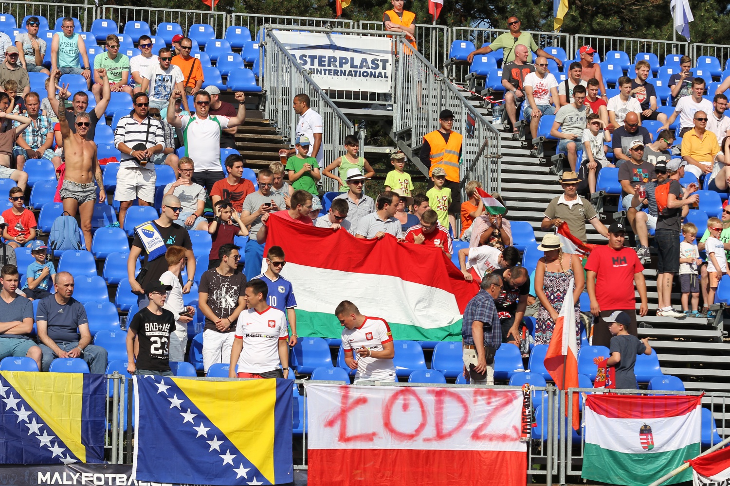Tekintve, hogy az előző magyar és lengyel meccseket együtt szurkolta végig a két tábor egy remek meccsre volt kilátás, ahova szép számmal érkeztek ezúttal is szurkolók! Nagy Lajos nem változtatott a kezdőn, ami ezúttal is így festett: Sikur Lajos – Fekete Róbert, Gál András, Bozsoki Imre, Szabó Zsolt, Varga Csaba. Az első félidő eleje leginkább egymás feltérképezéséről szólt, pár helyzet mellett kiegyenlített mérkőzést láthattunk! A 8. percben egy felesleges magyar szabálytalanságot követő szabadrúgást váltott gólra a lengyelek legveszélyesebb játékosa Cezary Szałek, mellyel az Európa Bajnokságon először hátrányba került csapatunk! Ekkor a srácok egy fokkal magasabbra kapcsoltak, de rést nem találtak a remekül záró lengyel falon.