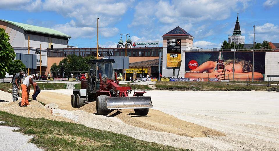 A munkálatok először a murvás parkoló tereprendezésével kezdődtek. Nem volt egyszerű a feladat, hisz a teljesen egyenetlen felszínből játékra alkalmas sík területet kellett kialakítani. Több száz tonna sóder és föld megmozgatása után a héten a lelátók telepítése is megkezdődik.